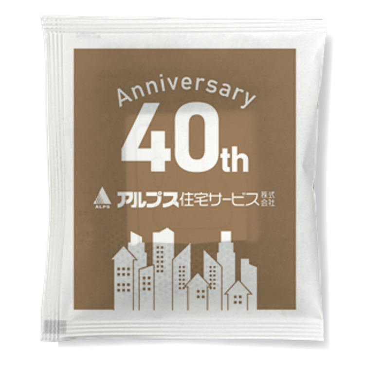 東京都を中心に不動産サービスを展開しているアルプス住宅サービス株式会社さまの40周年記念ドリップバッグコーヒーをおつくりいたしました! Q.できあがってきたドリップバックコーヒーを手にとっての感想をお願いします! もっとつるつる光沢のある外...