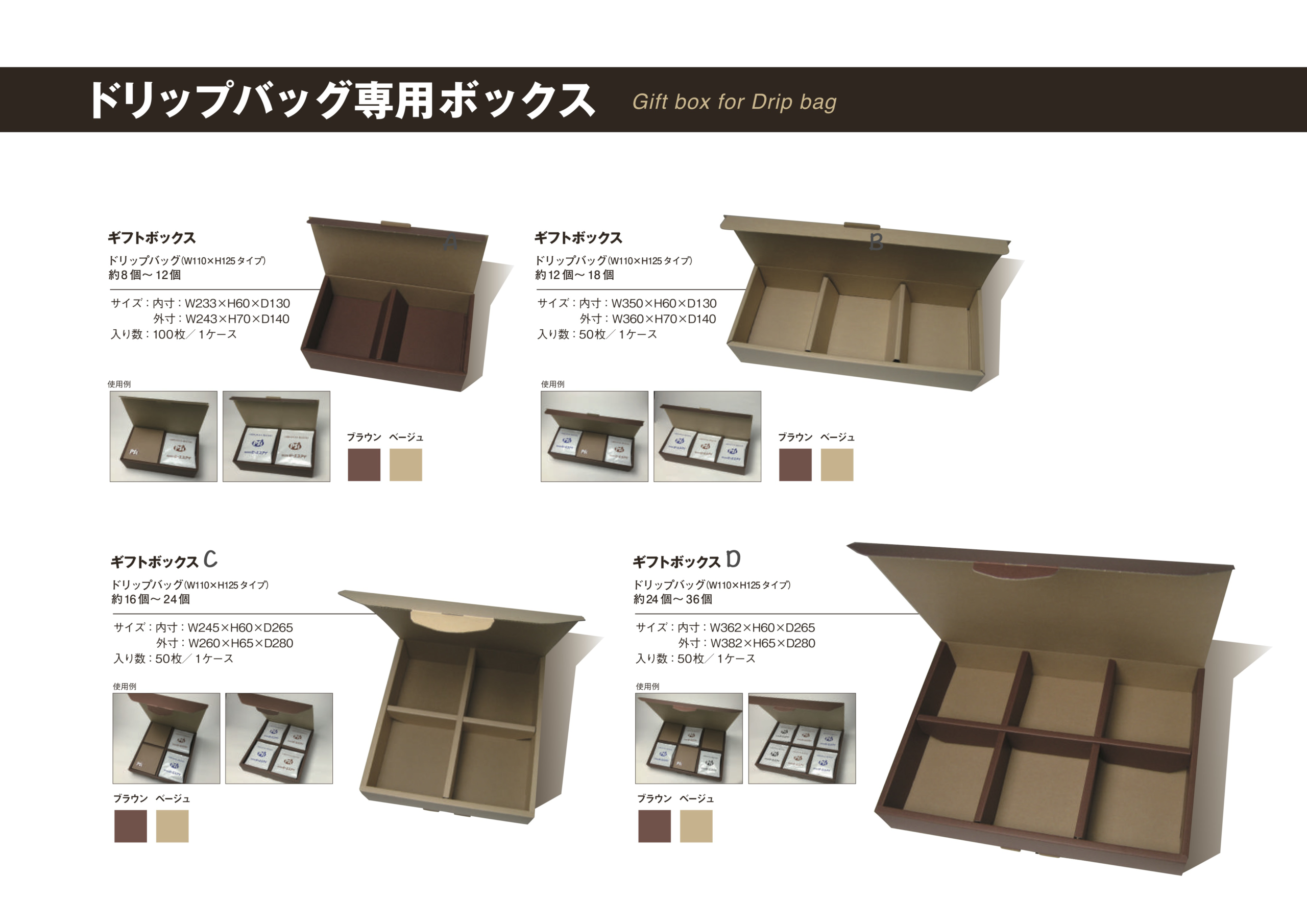 ドリップバッグコーヒー専用のBOXをご用意いたしました。